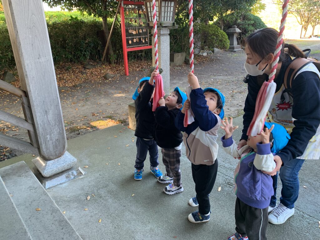 鈴を鳴らして手を合わせると「大きくなったら警察になりたい!」「新幹線(運転手)になれますように」とお願いする子ども達でした!