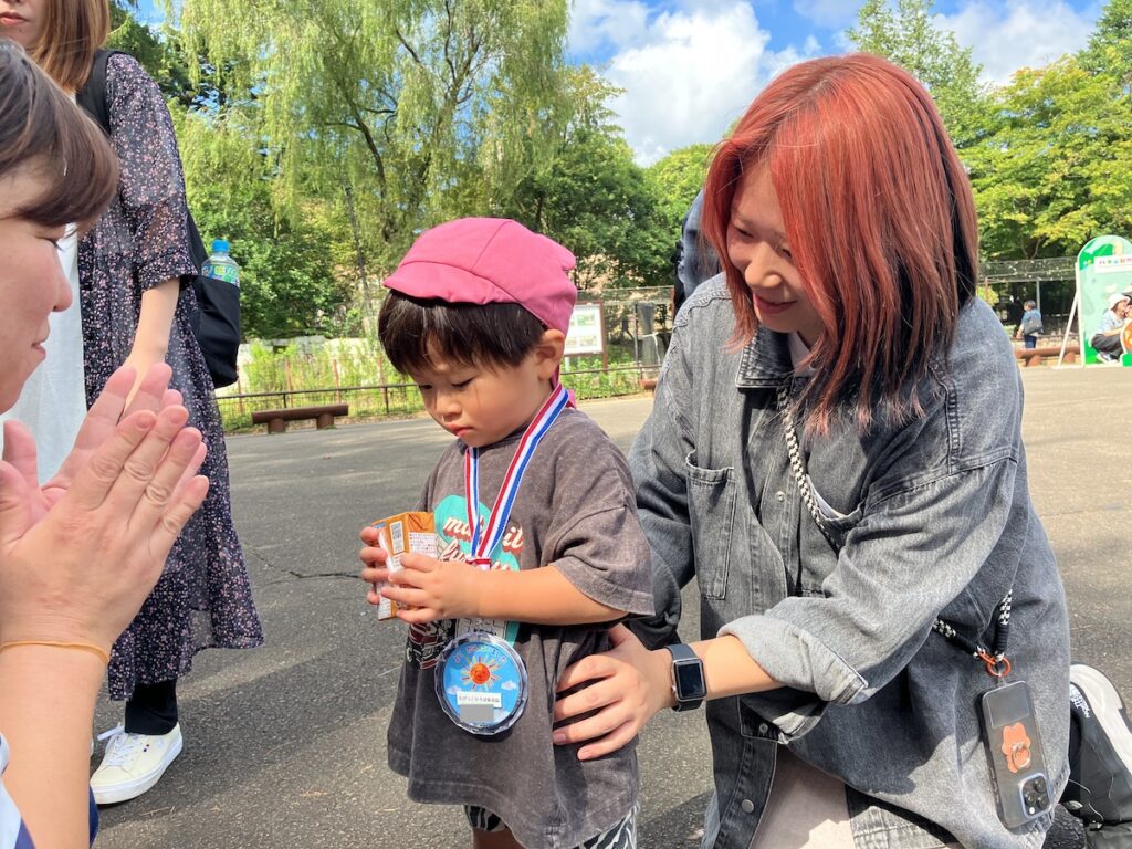 園長先生からメダルをもらうと、嬉しそうに眺めてパパやママにお話ししていました♪