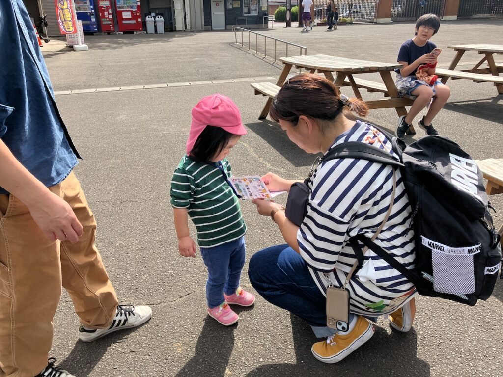 嬉しそうにスタンプラリーの台紙を首から下げる子ども達♪